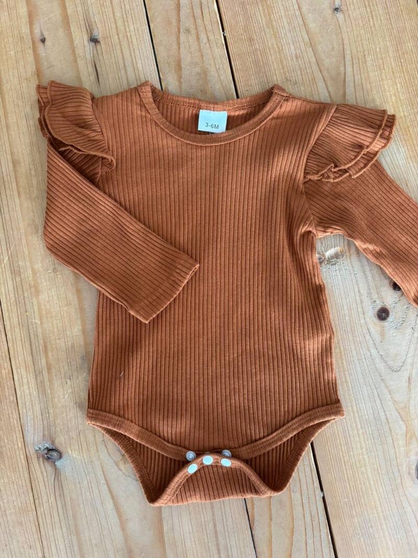 Deze rompers met roesels aan de mouwtjes staan prachtig onder een overgooiertje of juist los op een broekje. Ruches aan de mouwtjes geven een speelse, romantische touch.