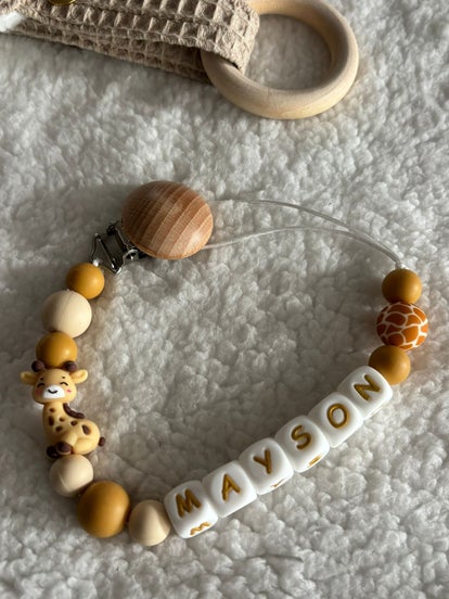 Een speenkoord van siliconen kralen met naam is niet alleen super praktisch, maar ook een persoonlijk en stijlvol accessoire voor je kleintje.